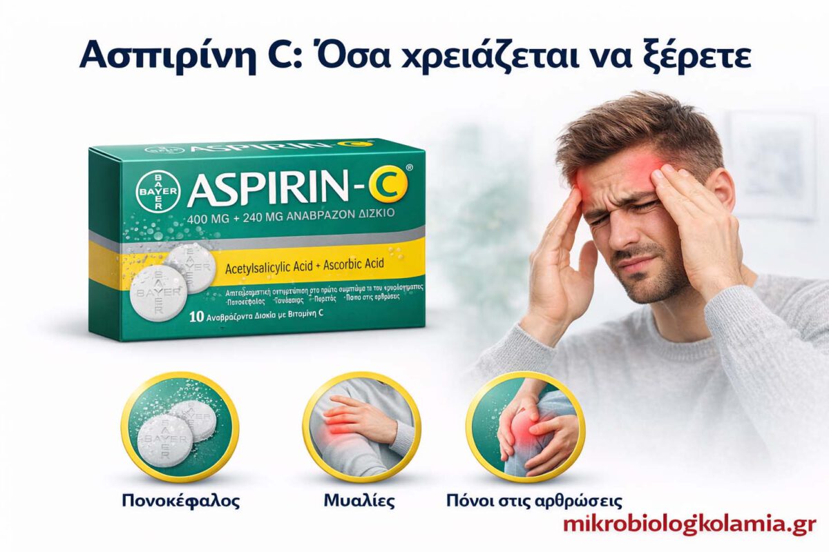 Η Ασπιρίνη C είναι χρήσιμο αναλγητικό και αντιπυρετικό για βραχυχρόνια χρήση, αλλά δεν είναι «αθώο» φάρμακο. Μπορεί να βοηθήσει σε πυρετό, πονοκέφαλο, πόνους του κρυολογήματος και γενικά σε πόνους μικρής ή μέτριας έντασης, όμως η σωστή χρήση της εξαρτάται από το συνολικό ιατρικό προφίλ του ασθενούς.