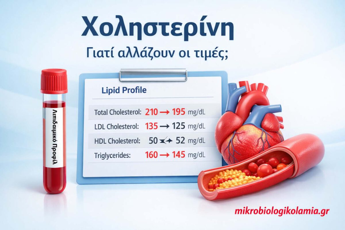 Η χοληστερίνη δεν παραμένει πάντα ίδια σε κάθε εξέταση και μικρές διαφορές μπορεί να είναι απολύτως αναμενόμενες. Η νηστεία, το πρόσφατο φαγητό, το αλκοόλ, το βάρος, η άσκηση, μια λοίμωξη, η λήψη φαρμάκων και η φυσιολογική βιολογική διακύμανση μπορούν να αλλάξουν το αποτέλεσμα χωρίς αυτό να σημαίνει απαραίτητα λάθος ή επιδείνωση.