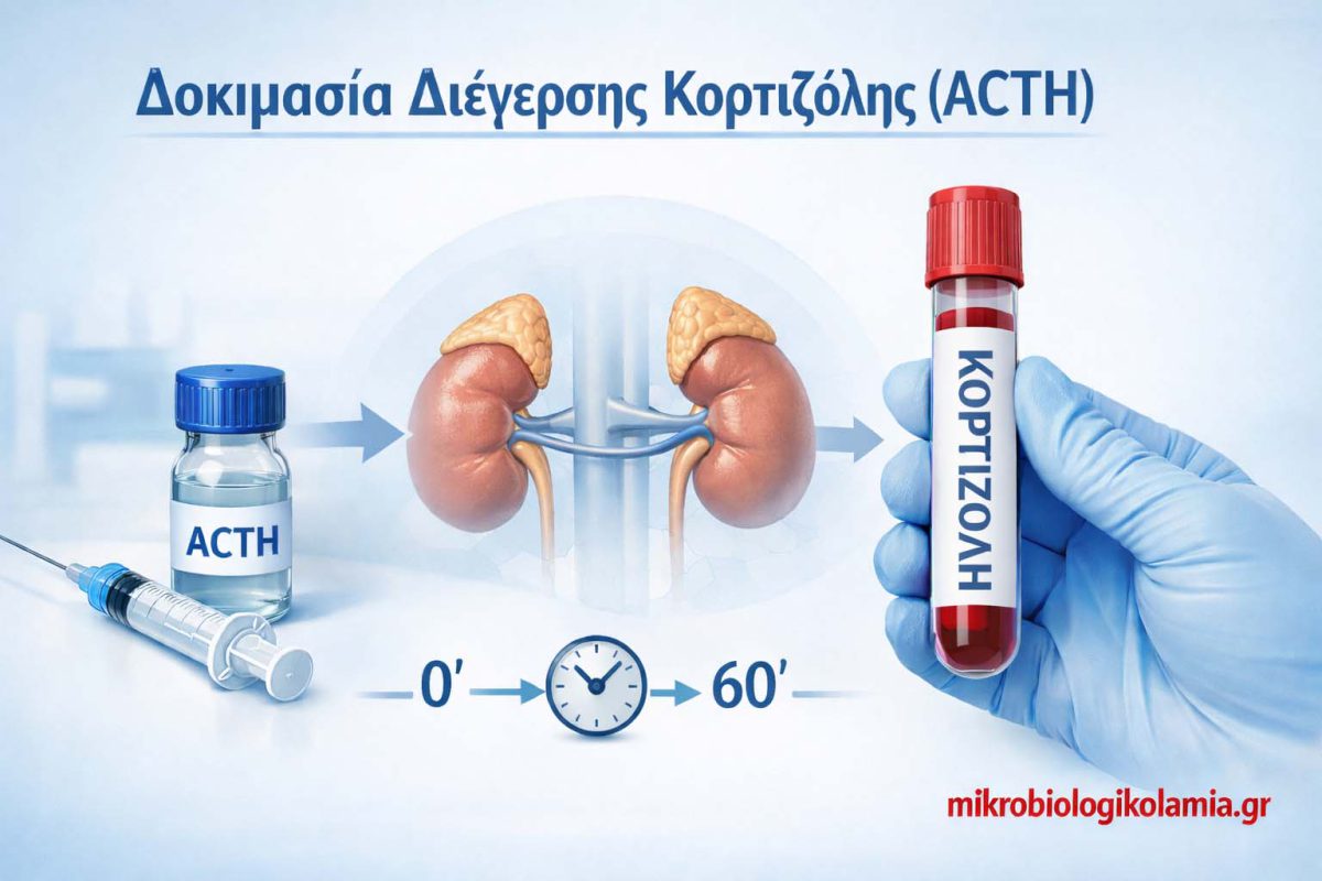- Η δοκιμασία ACTH αξιολογεί αν τα επινεφρίδια μπορούν να παράγουν επαρκή κορτιζόλη μετά από ορμονική διέγερση.