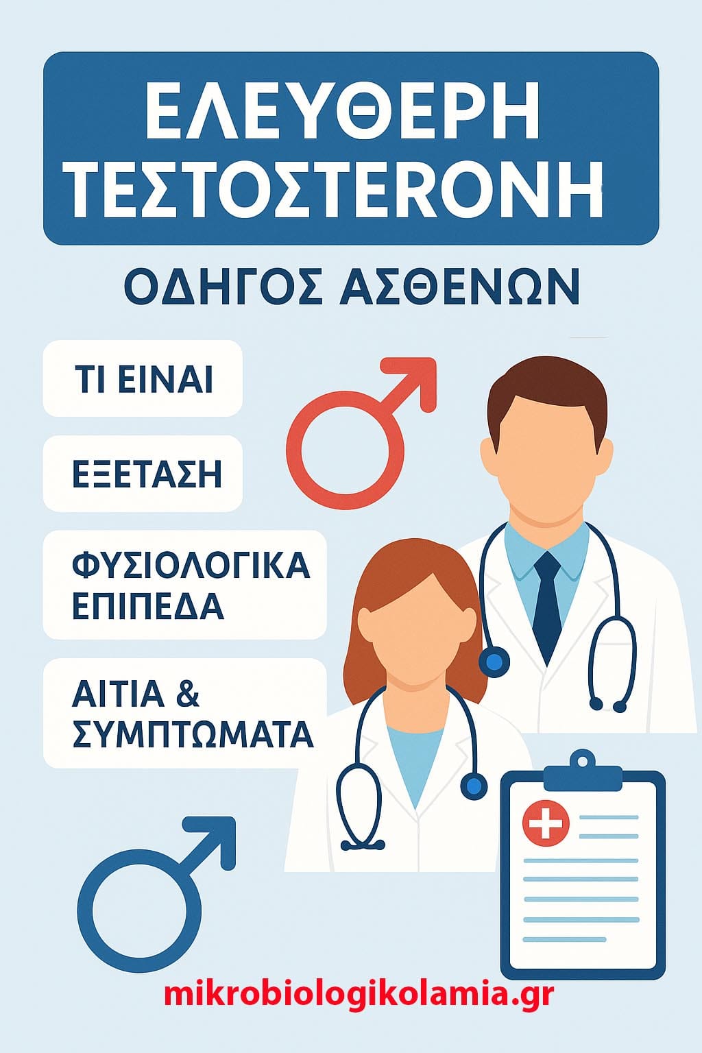 • 🧠 Η ελεύθερη τεστοστερόνη είναι η βιολογικά ενεργή μορφή της ορμόνης, υπεύθυνη για τη δράση στους ιστούς.